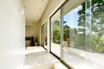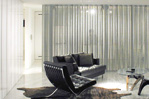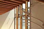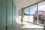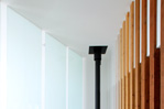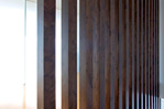 半透明のガラスと温もりのある木の柱によってつくられる2つのスクリーンが、光と風、空間の繋がりを和らげます。