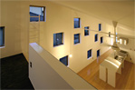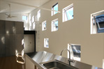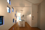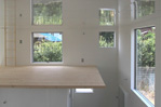 四方が住宅に囲まれた敷地。たくさんの小さな窓が、室内からの景色を変化させ、爽やかな光で満ちたをつくります。