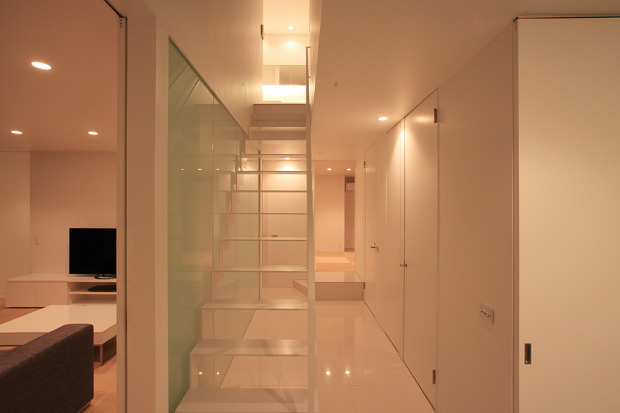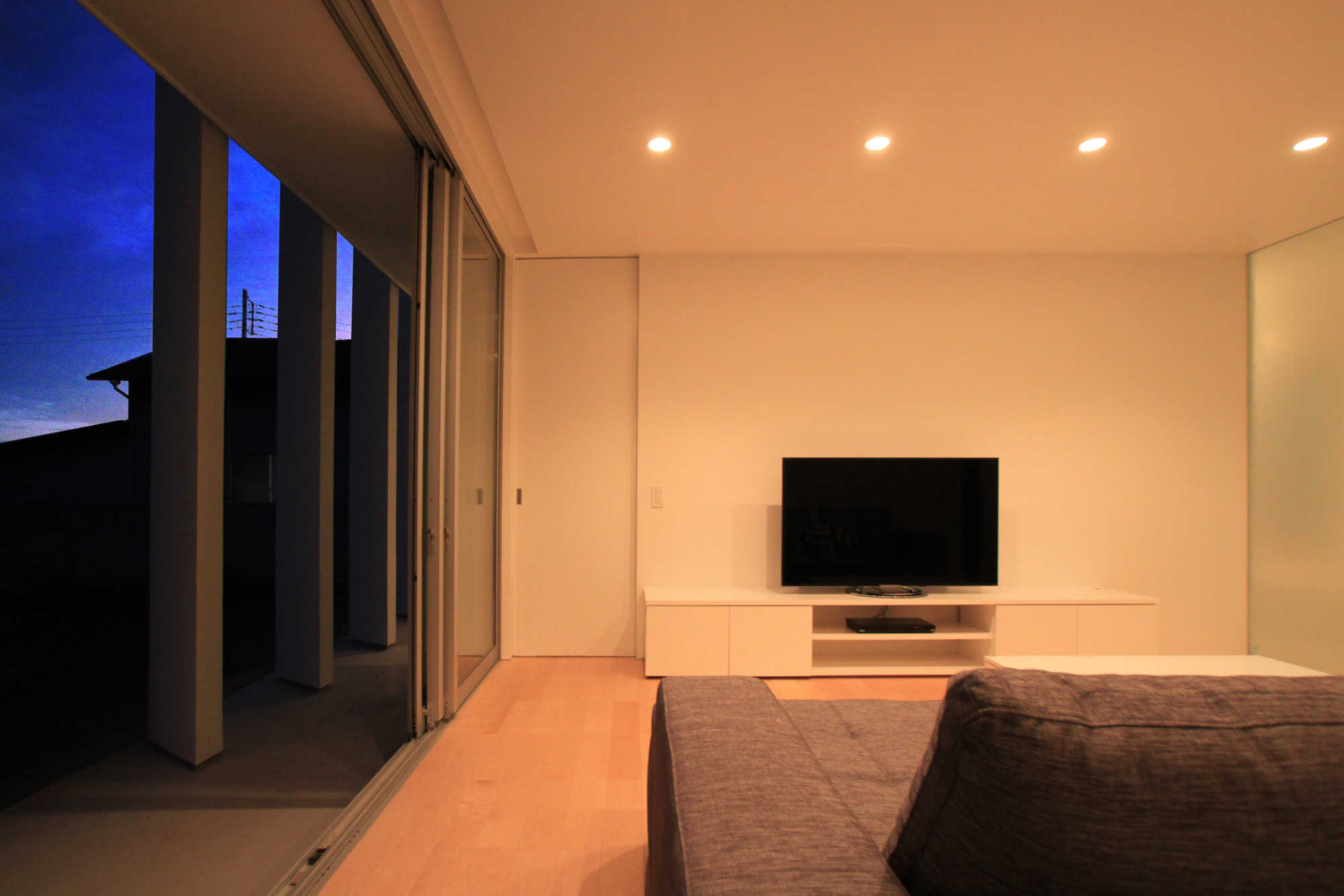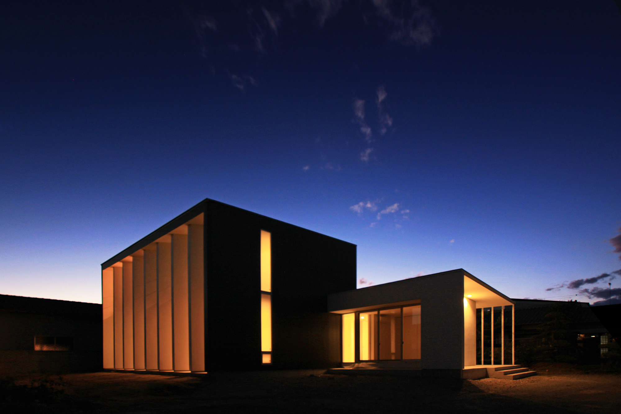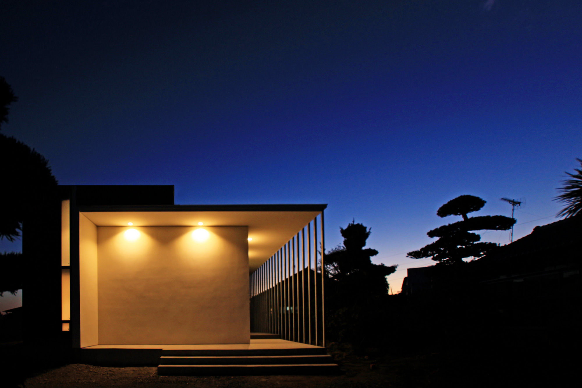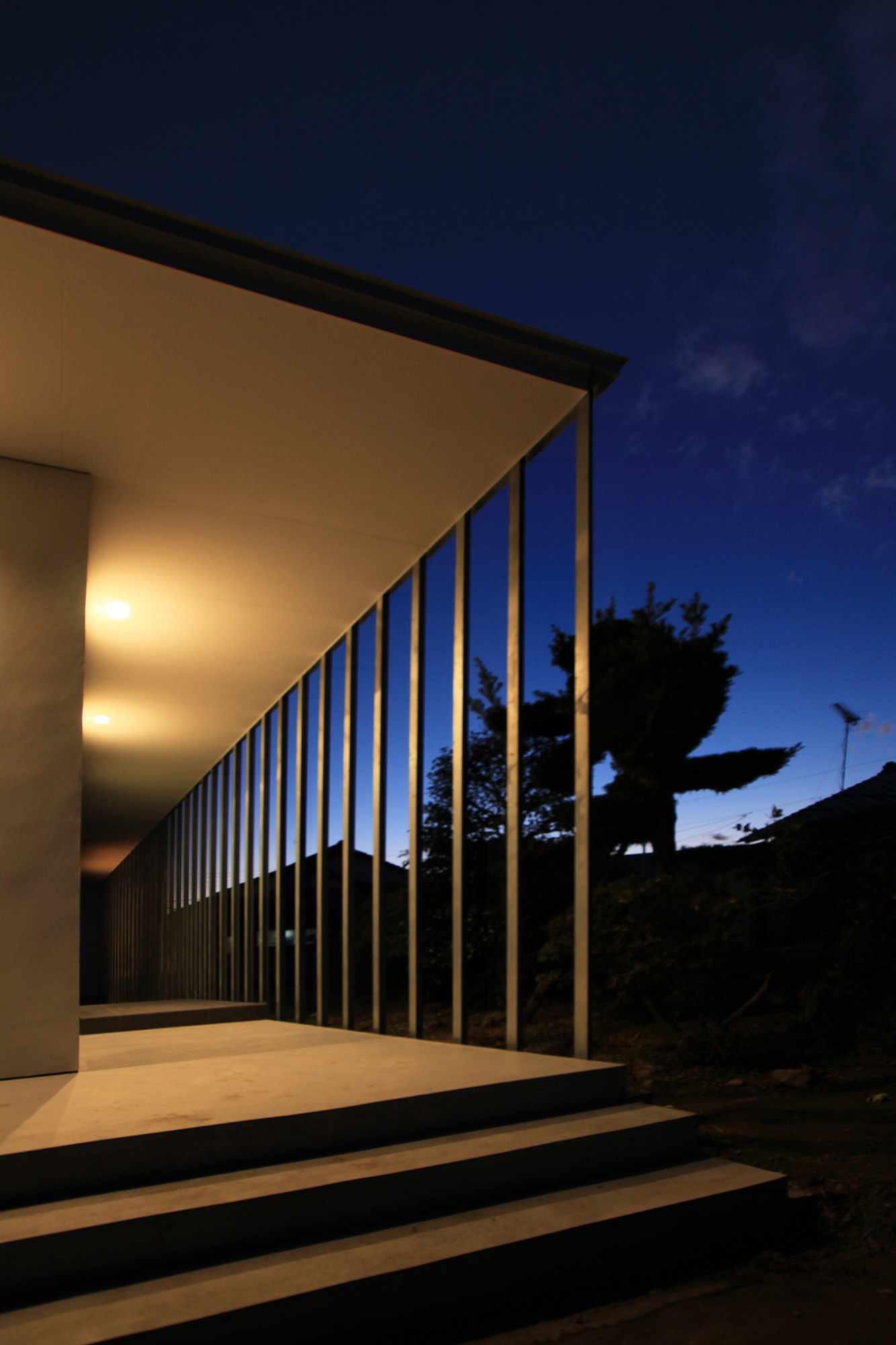 夜には生活の灯りがルーバーに反射し、行灯のように辺りを優しく照らします。